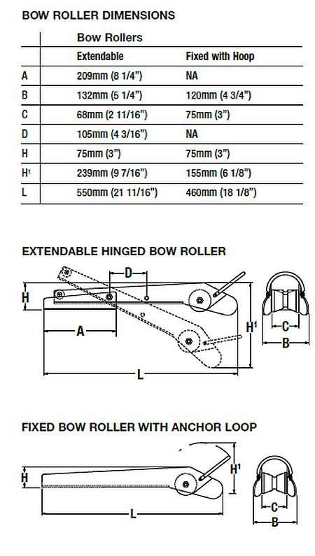 Maxwell Fixed Bow Roller with Anchor Loop - 460mm (P104345)