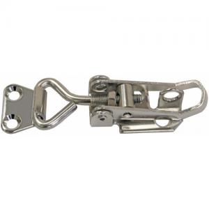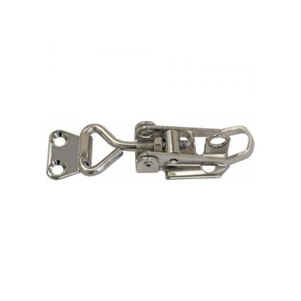 Robust pressed 304 grade stainless steel with cam action lever. Length adjusts by turning threaded bolt. Lockable has integral eye for a padlock.