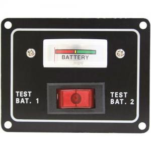 Battery test switch panel. Simply flick the switch to check condition of battery. Suits 12 volt - 1 0r 2 batteries. Black coated aluminium. Size 80 x 63mm