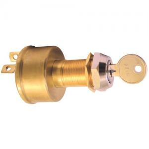 Brass Body 3 pole ignition starter switch off - on - start. All brass construction with brass terminals and screws 2 keys provided. Rated 12 volt - 20 amps. Dash thickness : max 25mm Shaft stem diamteter : 20mm