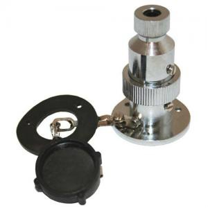 Chrome plated brass screw apart electrical plug and sockets with base seal, retainer chain and socket cover. Contact hole sizes are different to eliminate reverse polarity contact. 12 or 24 volt.