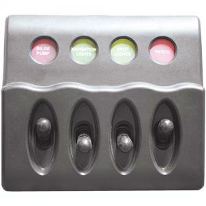 4 switch panel with fuses. 108mm x 98mm x w x 75mm depth behind.