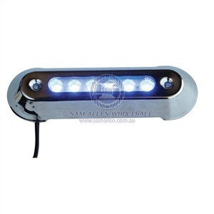 * Sealed watertight construction making it ideal for underwater lighting and trim tab light. * Waterproof rating of IP68 * Primary spot output is 60 degree from mounting surface and diffused lens produces a 90 degree light output. * Sealed in a polycarbonate housing * 316G stainless steel frame. * 5 year warranty (Excludes permanently moored vessels).