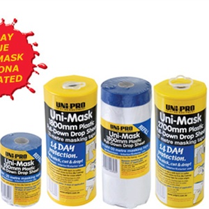 Pull down pre folded drop sheet with 14 Day blue masking tape. Comes in different size drops and lengths. Delivery: approx 3 working days
