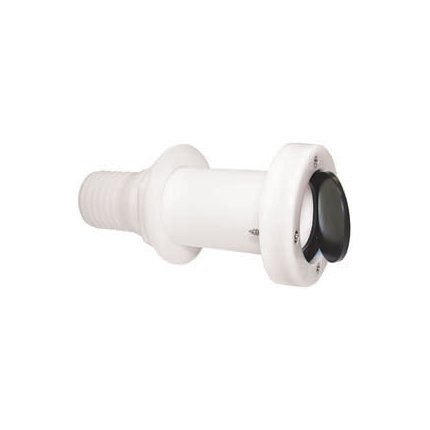 White nylon thru-hull with scupper valve attached.