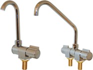 Solid chrome plated brass taps with a foldable spout that allows the faucet height to be only 38mm above the bench when folded. The spout swivels and adjusts in all directions. Single or Twin mixer faucet and both are supplied with 3/8 x 1/2 brass adaptor bush - so they can suit both 3/8"' and 1/2"connections