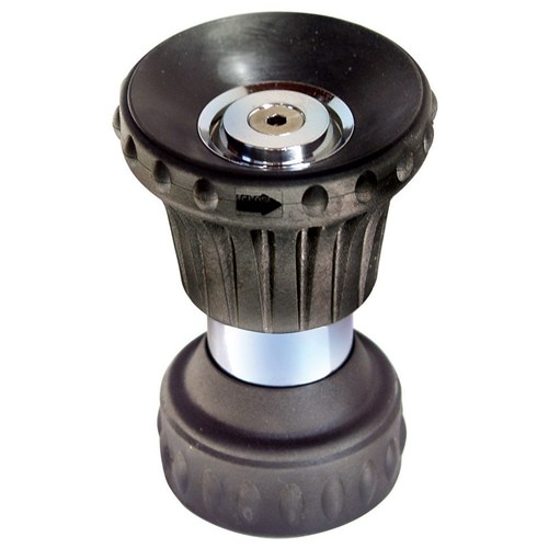 High quality, high pressure, heavy duty fire hose nozzle with adjustable spray pattern from a powerful stream to a wide flood pattern. Positive on / off and flow control by twisting the fire hose nozzle.