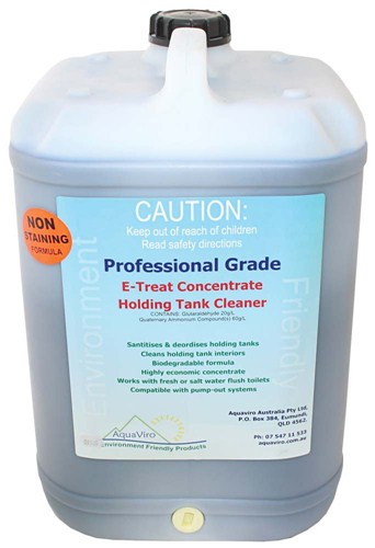 E-TREAT professional grade is a very concentrated treatment for waste holding tanks, marine toilets, portable toilets, building site toilets, Caravans Etc. The concentrated formula goes a long way, making it very cost effective against less concentrated formulas - it has a high dilution rate 1 Ml to 1 litre of tank capacity = 500 Ml does a 500 litre tank. It is a non-staining formula and has been specifically formulated to comprehensively treat waste, sanitise and deodorise.