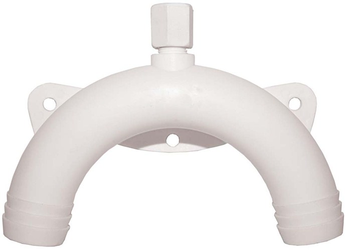 Economically priced white polypropylene vented loops. Essential component on inlet and discharge plumbing of toilets installed below the static or heeled waterline. Simple valve system ensures water cannot siphon over inlet and discharge hose loops.