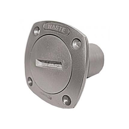 Top quality waste deck outlet made from LM6 anodised aluminium alloy, The top of the unit is clearly marked waste.