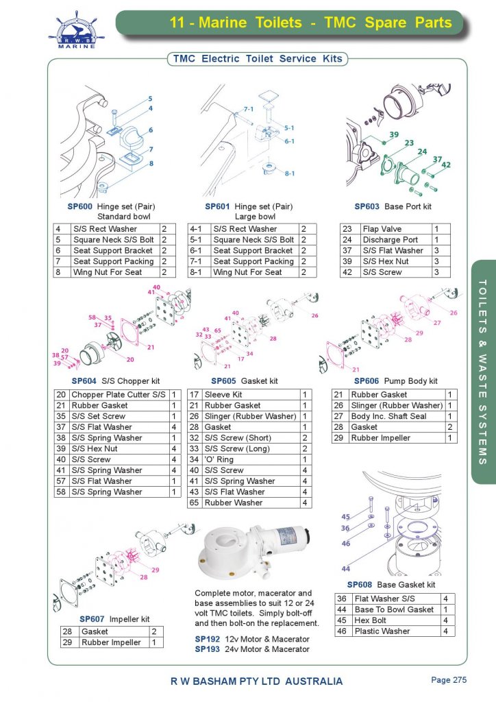 SP606 Pump Body Kit 21. Rubber Gasket 26. Slinger (Rubber Washer) 27. Body Inc Shaft Seal 28. Gasket 29. Rubber Impeller