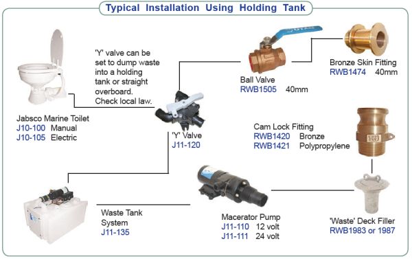 For installations below static or heeled waterline vented loops should be fitted - also use a solenoid valve (j11-122)