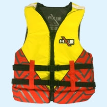These economically priced L50 Aquasport vests feature soft and comfortable foam bouyancy with a nylon outer, moulded anti lock zipper and 2 x 25mm diameter belts. These L50 vests are for use in sheltered waters only. The multi fit design and and large size range ensures there is a size to suit most wearers. AS4758 approved. Supplied in attractive safety colour combination of yellow with a red pattern and black belts