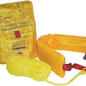 Man overboard rescue system consisting of bag with straps for rail mounting, 40 metres x 8mm floating rope and flexible