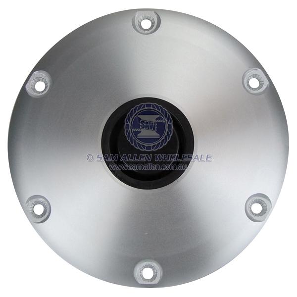 Heavy-duty cast aluminium base with 6 x (4 x mounting holes on 293749) 8mm countersunk mounting holes for a solid support in a cabin or cockpit.